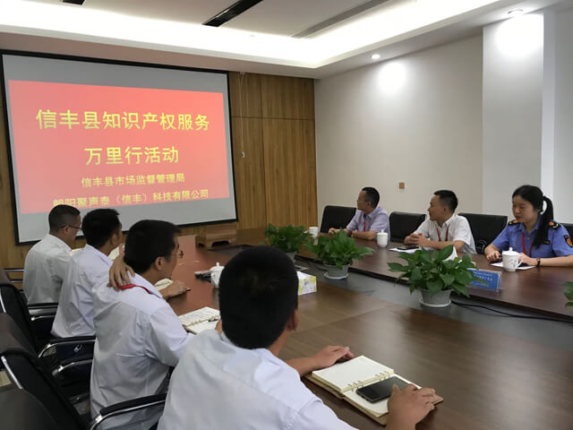 7月16日下午,?信豐縣市場(chǎng)監(jiān)管局李少林股長(zhǎng)的帶領(lǐng)下,巡講組來(lái)到朝陽(yáng)聚聲泰(信豐)科技有限公司開(kāi)展“知識(shí)產(chǎn)權(quán)服務(wù)萬(wàn)里行暨專利質(zhì)量提升專題巡講”活動(dòng)。